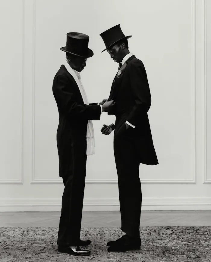 “The ultimate goal of a dandy is to be recognized—recognized as a living object or, failing that, as a visual object. The dandy’s play with old forms allows only a limited number of combinations; appearances are never destroyed, but simply recombined and given a different meaning.”2