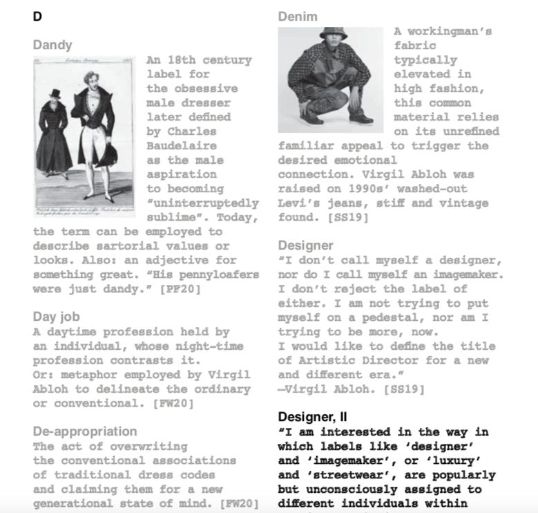 “I think it’s safe to say that Virgil Abloh’s work changed the culture around fashion and within fashion. His work and presence in the industry allowed many to see first-hand the ways in which fashion is interconnected with culture and to other practices and industries. He used fashion as a cultural tool to engage with fans, customers, and peers across different disciplines, and his collaborative approach encouraged a new generation of designers and fashion lovers to think differently about how they can approach fashion and become a part of the industry. Virgil’s nature as a polymath was also inspiring and aspirational, he followed all of his passions at the same time and by doing so enabled many to do the same.”